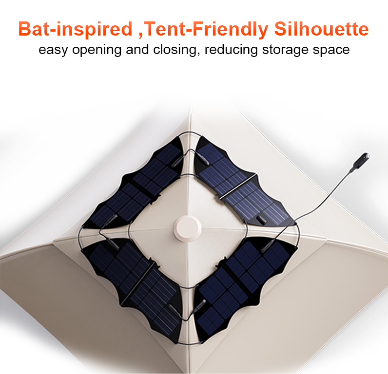 Adopting A-grade HPBC mono-crystalline cells, with a high conversion efficiency of ≥ 24.8%, the power generation is leading in the industry. Standard MC4 or Anderson professional interface, compatible with 99% of outdoor power stations on the market (such as Ecoflow, Jackery, etc.), plug and play. Just hang up and instantly become an "energy roof". It does not occupy any space, fully charged under the sun! After folding, it is smaller than a briefcase and has an IP67 waterproof rating. It is windproof and rainproof, accompanying you through mountains and seas.